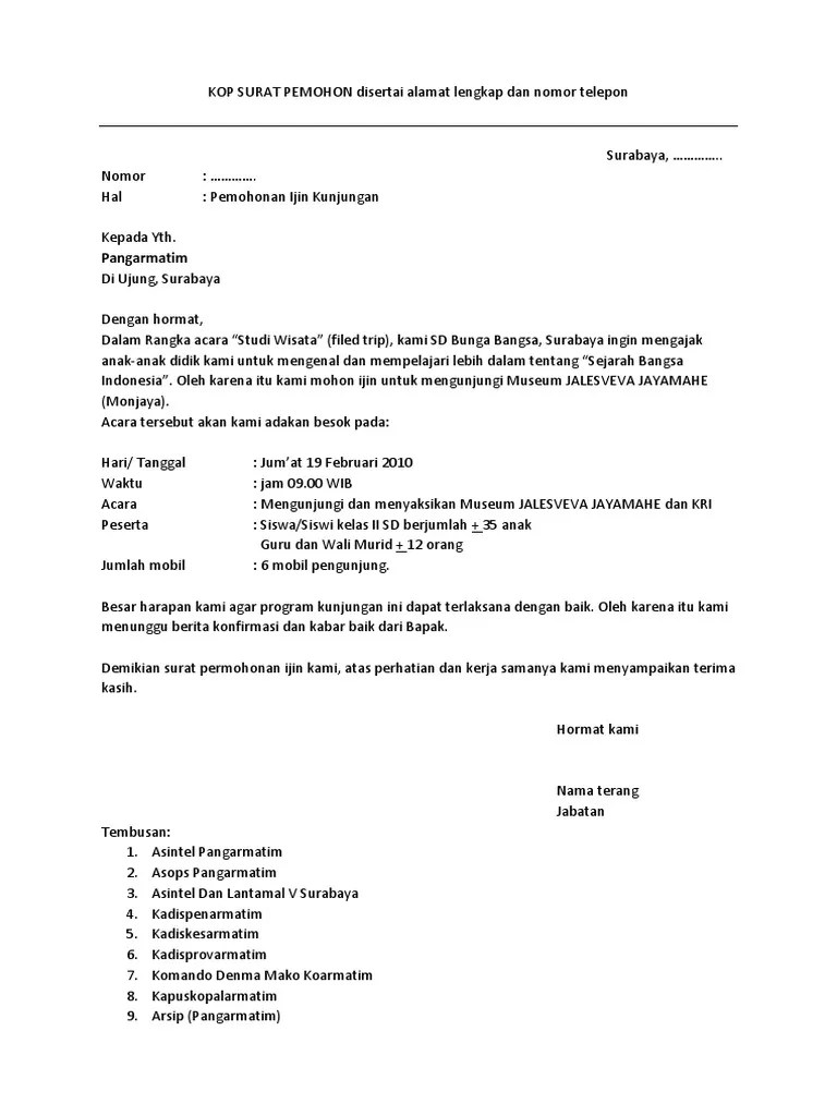 Contoh surat permohonan kunjungan saat akan melakukan kunjungan dalam rangka belajar maupun rekreasi ke suatu tempat seperti perusahaan museum atau lainnya . Contoh surat permohonan kunjungan ke museum sebagai referensi menulis surat permohonan kunjungan untuk berbagai keperluan pada umumnya. Saat ini, wna sudah bisa berkunjung ke indonesia untuk kegiatan tertentu. Format email dengan subject : Pada dasarnya setiap museum telah mempunyai sop dalam menerima pengunjung baik yang perorangan maupun rombongan.